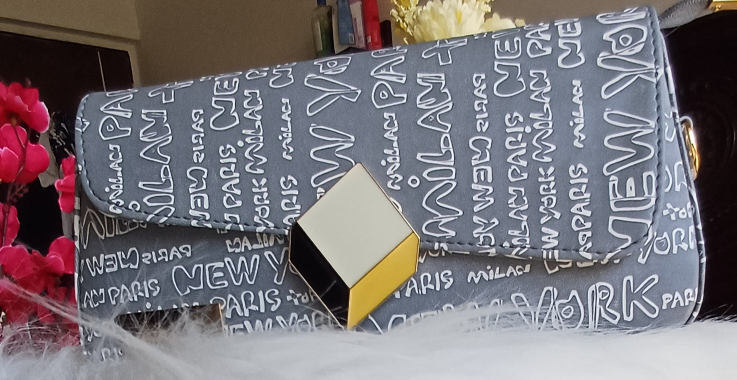 This grey and white printed baguette bag is a must have unique piece for your bags collection and can add that OOMPH factor for your overall look. If you prefer a simple but striking piece to carry your essentials, then this is the one for you.