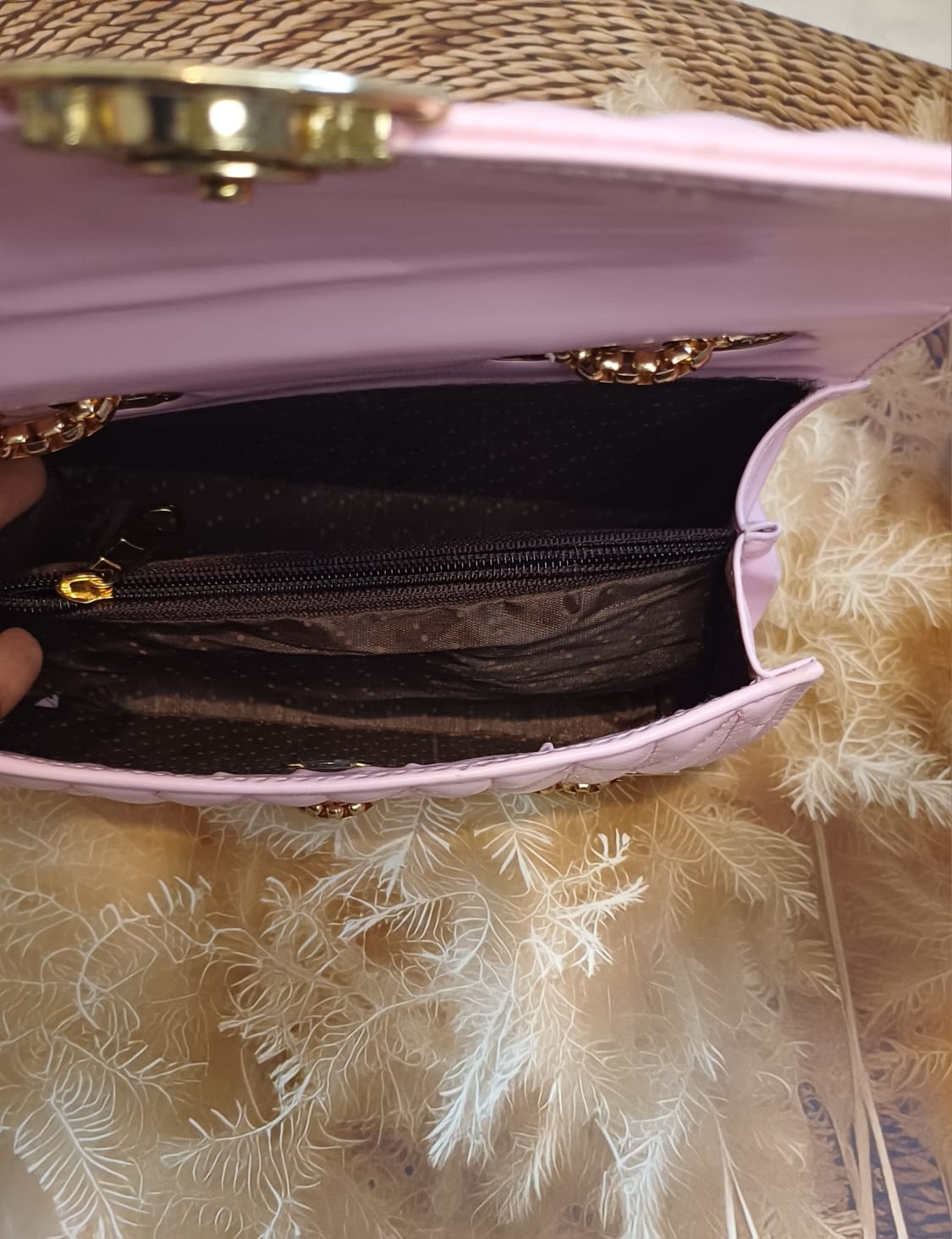 Pink Round Lock Quilt Sling Bag